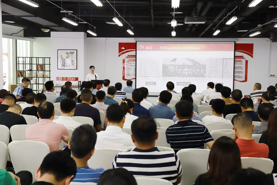 会议由南京市工商联党组成员、副主席郑德巍主持,南京市文化企业商会会长张丽,党支部书记王明梅带队参加。市统战部副部长、市工商联党组书记丁铭作为特邀嘉宾,为在场130名党员同志作《在“来之不易”中汲取奋进力量》为主题的党史学习专题讲座。