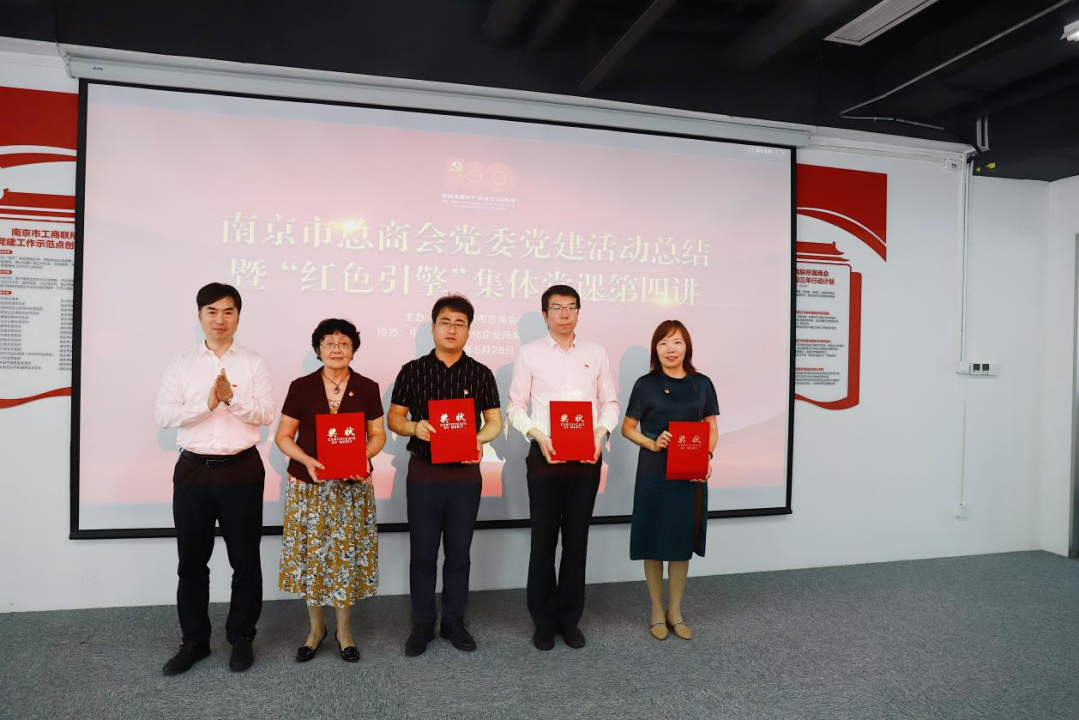 南京市文化企业商会荣获“南京市民营经济人士庆祝中国共产党成立100周年汇报展演”最佳组织奖,南京市文化企业商会党支部荣获党建标兵单位,丁铭书记颁奖授牌。