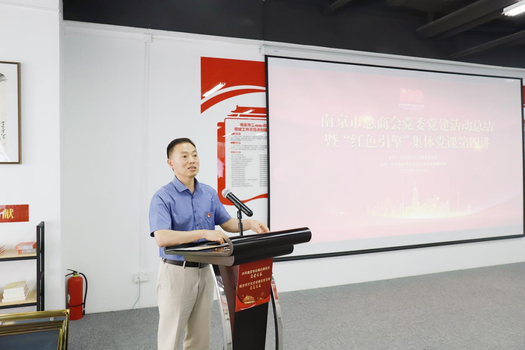 习近平总书记在今年2月20日的党史学习教育动员大会上指出:全党同志要做到学史明理,学史增信,学史崇德,学史力行,学党史、悟思想、办实事、开新局。牢记党的光荣历史,继承发扬党的优良传统。为了深入贯彻、落实党中央和省市委要求,由南京市总商会党委主办,南京市文化企业商会党支部协办的党建活动总结暨“红色引擎”集体党课第四讲于6月28日举办。