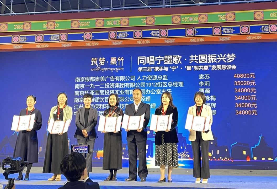 南京市文化企业商会作为南京市工商联下属的行业商会,勇担社会责任、发挥文化企业优势,在本次"南京墨竹周"期间为其提供免费电梯横媒体发布、联名合作推广西藏净土产品,并组织团购了2000盒墨竹小菜籽油,得到了主办单位领导的充分肯定和墨竹工卡县的感谢,在第三届"携手与‘宁’‘墨’契共赢"发展恳谈会上荣获墨竹工卡县人民政府颁发的"消费帮扶爱心商会"称号,南京市文化企业商会常务副会长兼秘书长上台领奖 。会长单位南京银都奥美广告有限公司、副会长单位南京玲珑天文化发展有限公司荣获消费帮扶爱心企业。