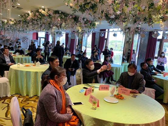 “‘共享放心餐、温暖你我他’百家商会支持餐饮行业大行动”正式启动,与会人员在真知味共享放心餐。